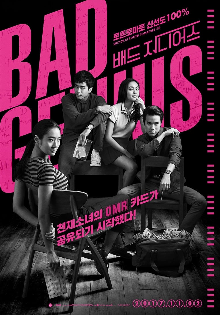 주인공 린 역할을 맡은 추띠몬 쯩짜런쑥잉이 말 그대로 멱살잡고 끌고 나가는 이 배드 지니어스는 다소 무리한 설정이 가끔 보이긴 해도 무난하게 관객을 영화 속의 학력 거래장터로 데려간다. 다만 주인공이 마지막에는 다소 성급하게 도덕주의로 가버린게 아닐까 한다. 태국 영화지만 전세계적으로 통하는 이야기라는게 슬프다면 슬픈 일.
