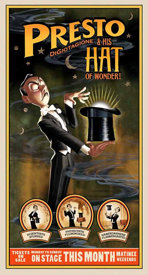 참고로 프레스토(presto)라는 단어는 보통 매우 빠르게라는 뜻으로 쓰이며 악보에도 많이 들어간다. 마법사가 무대 위에서 쓰는 이름이기도 하지만 마술을 부리기 전에 내는 기합이기도 하다.