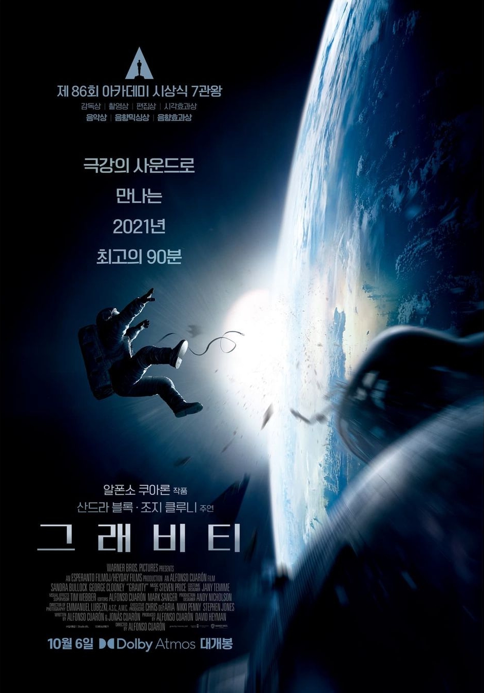 우주를 이 정도로 잘 표현해 낸 영화는 없다고 봐도 좋을 정도로 그래비티는 지구와는 다른 우주라는 낯선 환경 속 인간의 살아남기 위한 사투를 생생하고 냉정하게 그려내고 있다.